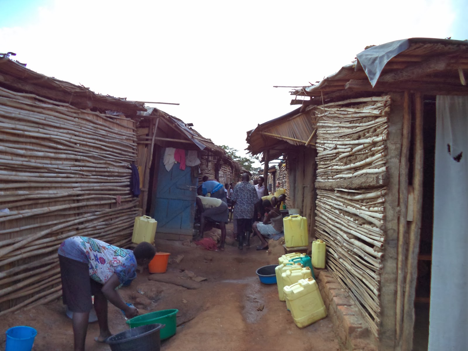 A Gulu row house, so to speak. This is right next to the large market where we do most of our outdoor shoppiing the houses remind me of the ones' I've seen in DC and Baltimore. This is a long alley of houses, one right next to the other. Morning time. Folks up washing dishes and clothes.